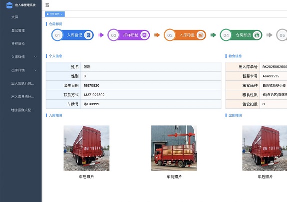 六、其他功能 能耗管理:系統(tǒng)記錄各個糧倉與設(shè)備的能耗數(shù)據(jù)并形成可視化報表,有助于管理者了解能耗情況并制定節(jié)能措施。 出入庫管理:實現(xiàn)出入庫自動稱重設(shè)備的集中監(jiān)控,保證糧食出入庫的數(shù)據(jù)留檔,方便查詢追溯。 知識庫開發(fā):建立糧食知識庫,為AI技術(shù)和建立專家系統(tǒng)提供重要支撐,填補糧食產(chǎn)后領(lǐng)域AI技術(shù)應(yīng)用的空白。