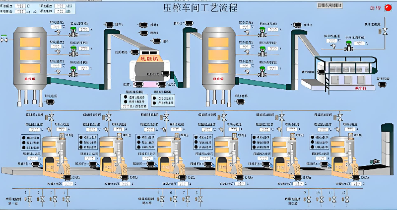 榨油生產(chǎn)控制系統(tǒng)適用于油脂企業(yè)各類榨油工藝車間,包括大豆、菜籽、花生、米糠等多種原料的不同榨油工藝生產(chǎn),涵蓋了預(yù)榨、浸出等多個工段的生產(chǎn)控制系統(tǒng)。在油脂生產(chǎn)過程中,可以實現(xiàn)對整個系統(tǒng),每個工段的自動控制,從原料、油品計量、過程管理和記錄、到罐區(qū)液位數(shù)據(jù)監(jiān)控、溫度信息監(jiān)控及地磅數(shù)據(jù),協(xié)助車間及工廠實現(xiàn)物料平衡。