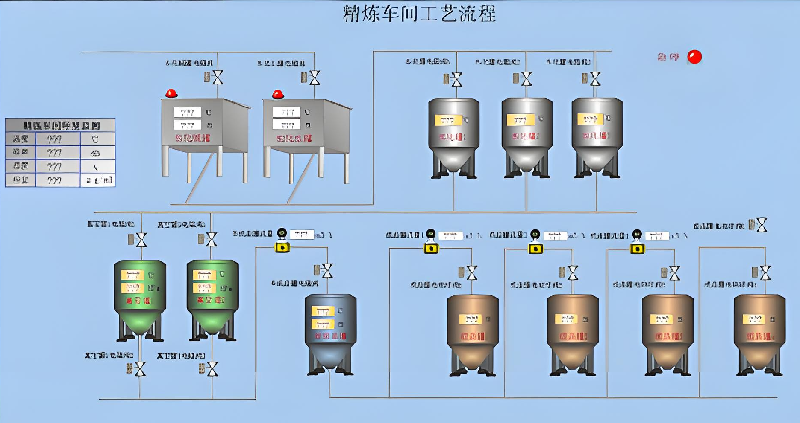精煉生產(chǎn)控制系統(tǒng)系統(tǒng)適用于油脂企業(yè)精煉工藝車間,包含了脫色、脫臭、脫蠟等多個工段的生產(chǎn)控制以及離心機(jī)等特殊單體設(shè)備的監(jiān)控。在油脂生產(chǎn)過程中,可以實現(xiàn)對整個系統(tǒng)每個工段的自動控制,從毛油、油品計量、過程管理和記錄、到罐區(qū)液位數(shù)據(jù)監(jiān)控、溫度信息監(jiān)控,全方位提升監(jiān)控力度,通過各個生產(chǎn)參數(shù)的調(diào)配,提高精煉出油效率。