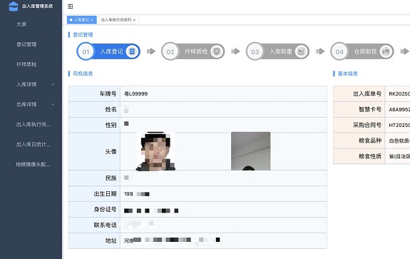 功能:集成車輛識(shí)別、稱重管理、質(zhì)檢管理、出入庫管理等功能,實(shí)現(xiàn)糧食從入庫到出庫的全流程自動(dòng)化管理。